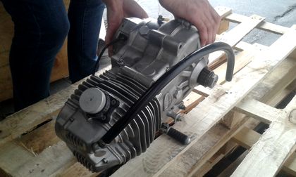 którzy zajęli się obsługą lotniskową, czasową odprawą celną oraz dostawą do miejscowości Outrup w zachodniej Danii w celu montażu silnika do ramy motocykla.