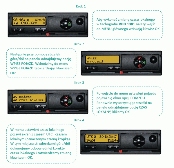 Zmiana czasu jest obowiązkowa i należy o niej bezwzględnie pamiętać. Tachograf jest urządzeniem rejestrującym czas pracy kierowcy i kierowca musi dokonać wszelkich starań, aby dane były jak najbardziej zgodne z rzeczywistością.