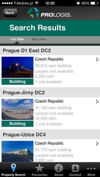 wszystkie wolne moduły w obiektach firmy Prologis w Europie, w tym w regionie Europy Środkowo-Wschodniej. Korzysta ona z technologii GPS, by zlokalizować najbliższy obiekt i pokazać go na mapie. Program zapewnia również zdjęcia danej lokalizacji oraz wskazówki dojazdu. Aplikacja jest w pełni zintegrowana z pozostałymi funkcjami iPhone’a, pozwalając użytkownikom na szybkie i łatwe przesłanie odpowiednich danych kontaktowych za pomocą wiadomości SMS lub poczty elektronicznej.