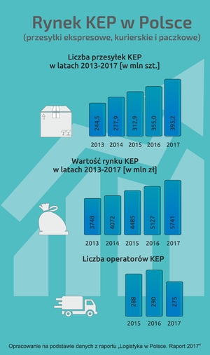 Rynek KEP jest specyficzny na tle innych segmentów sektora TSL. Jego głównym wyróżnikiem jest wysoka koncentracja – ok. 77% przychodów w Polsce pochodzi od czterech największych podmiotów, podczas gdy w TSL jest to zaledwie 5-6%. Cechuje się także większymi barierami wejścia, które wynikają z potrzeby posiadania gęstej i rozległej sieci operacyjnej, niezbędnej do realizacji terminowych i względnie niedrogich dostaw. Działalność operatorów KEP w Polsce podlega nie tylko pod przepisy prawa przewozowego, ale także prawa pocztowego. Wiąże się to z dodatkowymi wymaganiami i komplikuje w niektórych przypadkach działalność firm, np. obowiązek sprawozdawczości, organizowania zadań na rzecz obronności naszego kraju. Ostatnim wyróżnikiem rynku KEP jest to, że nadawcami i odbiorcami przesyłek są nie tylko osoby prawne, ale także osoby fizyczne. Powoduje to nie tylko inne podejście do klientów, ale także ich obsługę operacyjną (np. dostawa do domu wraz z wniesieniem towaru, problem nieobecności odbiorcy w zaadresowanym miejscu).