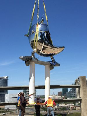 Ważąca blisko 1600 kg rzeźba ze stali nierdzewnej jest projektem artysty Brada Oldhama. Odlana w Chinach, mierząca blisko 7 metrów wysokości oraz 3 metry szerokości, pokonała drogę pełną przygód zanim dotarła do miejsca docelowego w Dallas w USA.