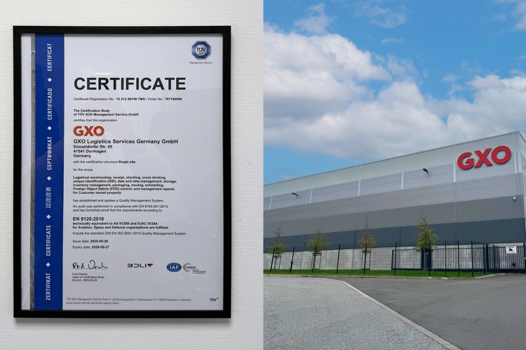 GXO Logistics, Inc., największy na świecie operator logistyki kontraktowej, ogłosił, że jego magazyn współdzielony w Dormagen uzyskał certyfikat EN 9120 (AS/EN 9120), będący standardem zarządzania jakością dla dystrybutorów w przemyśle lotniczym. Certyfikacja potwierdza jakość, identyfikowalność i zgodność z przepisami części do samolotów komercyjnych w przestrzeni dedykowanej do obsługi firmy Boeing w magazynie współdzielonym GXO w Dormagen. To kamień milowy w wieloletniej ekspansji GXO w Niemczech i dowód zaangażowania firmy w utrzymanie wysokich standardów zarządzania jakością, bezpieczeństwa oraz troski o środowisko (QHSE).